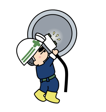 下水道管の調査は、調査員が入れない大きさの管はテレビカメラで、大きな管では調査員が中に入って目視(目で見て、カメラで記録)で調査します。