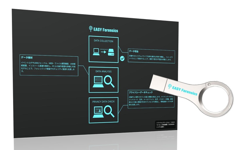 「イージーフォレンジック」は、被害を最小限に抑え、だれでも簡単にフォレンジック調査を可能にするための画期的なソリューションです。