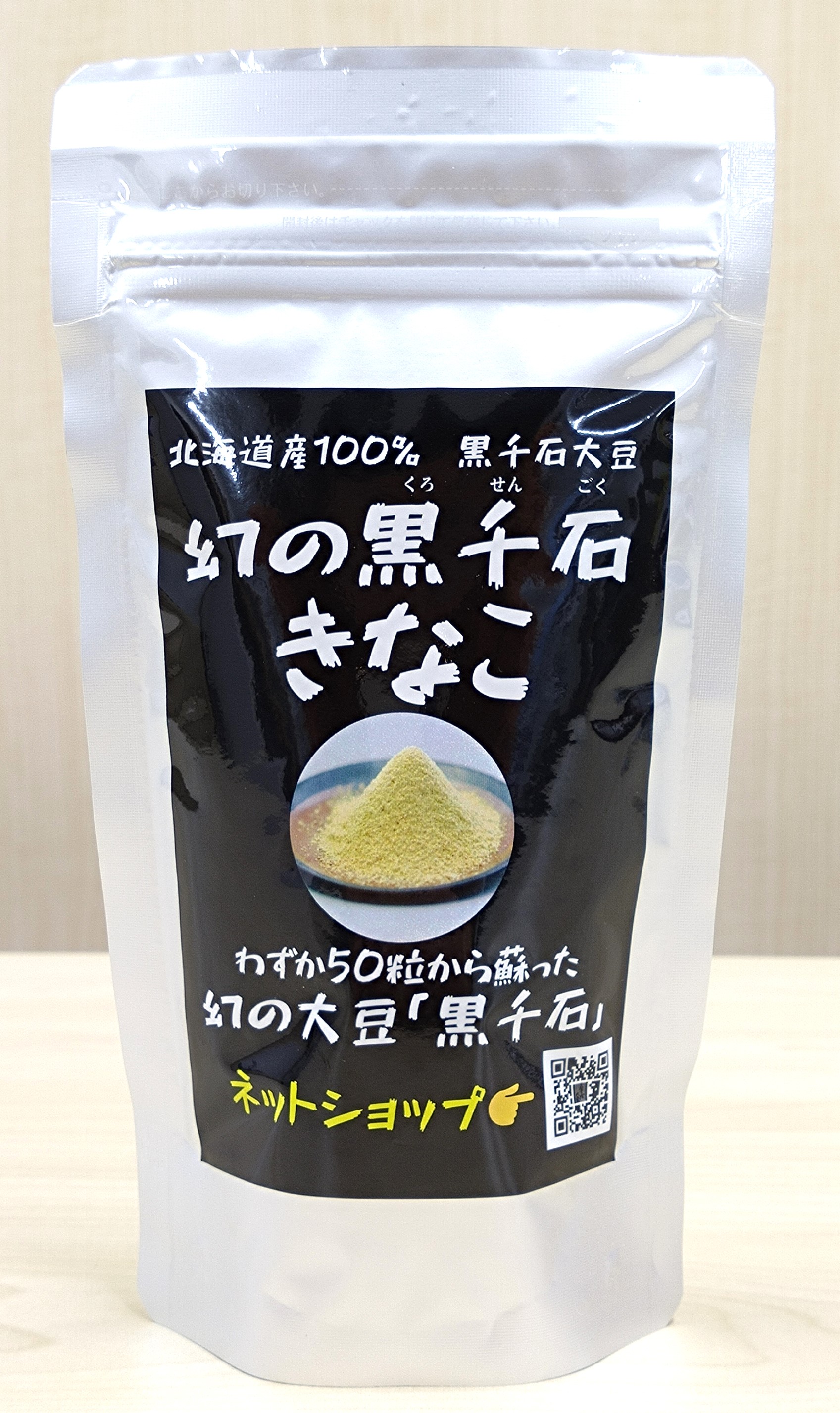 幻の黒千石大豆を丸ごと食べられるよう皮ごとゆっくり低温で製粉しているので、黒千石大豆の独特な甘みと風味を感じられます。中が緑色の豆なので、きなこも緑色なのが特徴です。