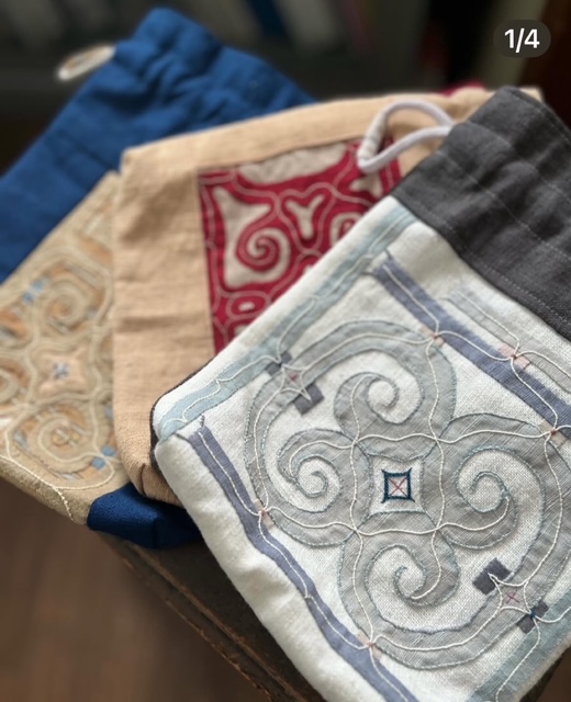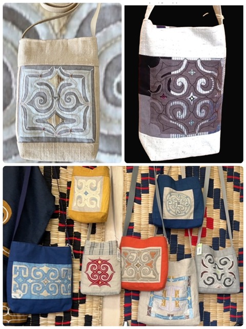 模様には「魔除け」「悪いものを寄せ付けない」という祈りが込められており、代々大切に伝えられてきました。現代の暮らしにも取り入れやすく、バックなどの布小物にも展開しています。伝統と手仕事の温もりを感じていただける作品です。