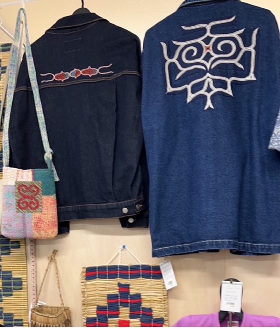 デニムジャケットです。背中には前にはアイヌ民族に伝わる刺繍文様お施し