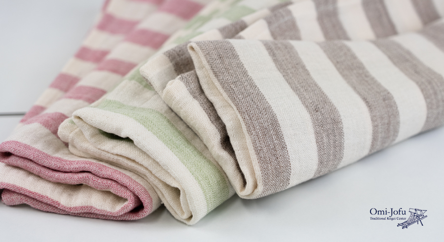 伝統産業として歴史のある当麻織物の産地には、蓄積された経験と技術、知恵があります。産地としての「ものづくり」は伝統の良さを生かしつつ、暮らしの変化にともない、改良し続けています。天然素材の「麻」の魅力は、吸水性と乾燥性があり、清潔に使えることです。そして使えば使うほど柔らかくなり風合いと心地良さが増していきます。近江上布伝統産業会館のオリジナルブランド「omi-jofu]では、伝統の良さを最大限に生かしつつ、手織りや機械織りで生み出された作り手の見える製品を提案しています。