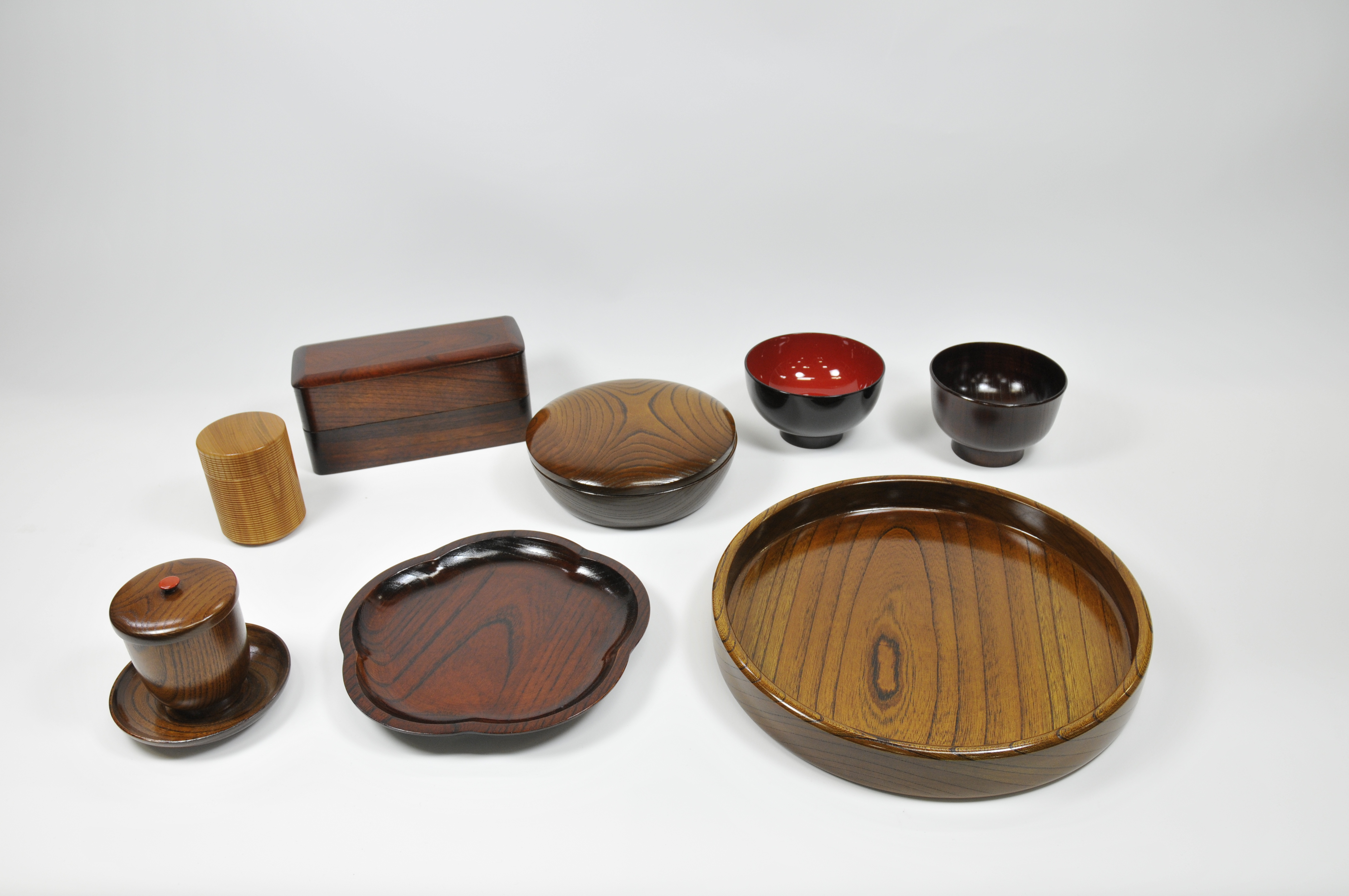 盆、皿、汁わん、茶托、重箱、茶びつ、飯器などがその代表的な工芸品です。
